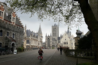 Yummies in hand, we went for a walk past old St. Peter's Abbey and wandered through Citadel Park. It had rained earlier in the morning so it felt good to smell some trees. When we returned to the old city center St. Bavo's bell was busily banging away the noon hour - an event that seemed to last nearly ten minutes. I stopped in a souvenir store and then deposited our wares at the hotel room before walking to the local brewery, Gruut.